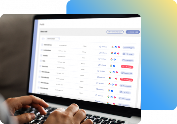 Ci occupiamo di rivendicare e ottimizzare le schede Google, garantendo che tutte le informazioni siano aggiornate, coerenti e uniformi. Nome, struttura e dettagli dei servizi saranno standardizzati su tutte le schede, così da migliorare la visibilità e l’affidabilità della tua attività online.